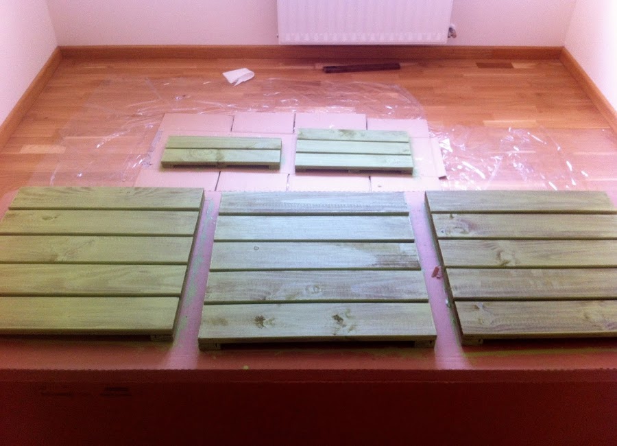 - 5 Baldosas de madera de pino 50x50cm. (compradas en Leroy Merlin).