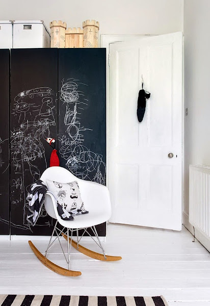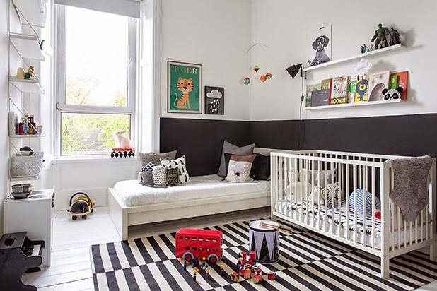 Me ha encantado la habitación infantil, esa combinación de cama para niño y cuna, supongo que será porque están en proceso de que el bebé se haga mayor o que los hermanos dueraman juntos, sea como sea, la distribución y la idea me ha parecido buenísima.