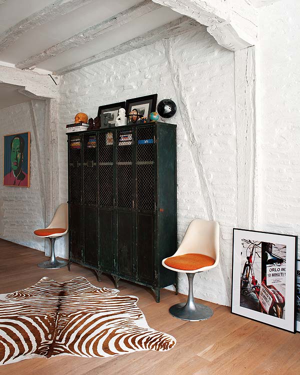 Paredes pintadas en blanco donde destaca el ladrillo con muros que revelan materiales, piezas clásicas, de estilo industrial y vintage, consiguen reflejar un estilo ecléctico y sereno con toques de estilo nórdico. El interior a gran altura y la paleta de colores neutra del continente de esta vivienda es lo más destacable. Las piezas de claro aire vintage, junto con otras de anticuario y más recientes dan al conjunto gran riqueza decorativa.