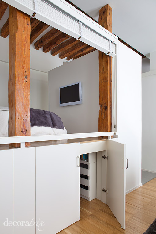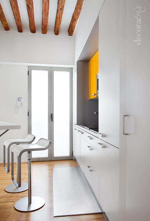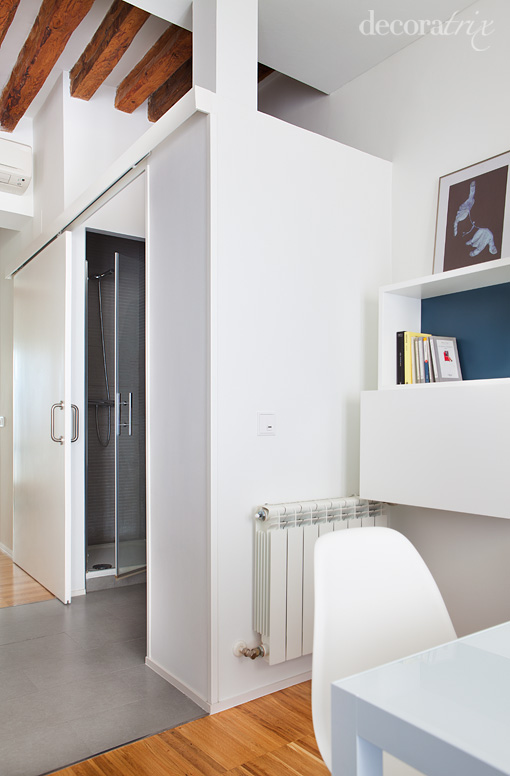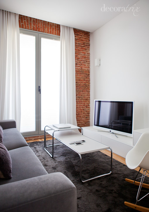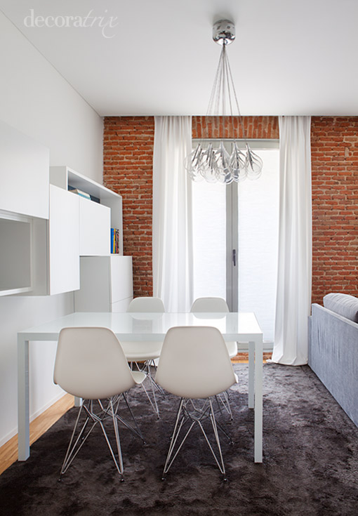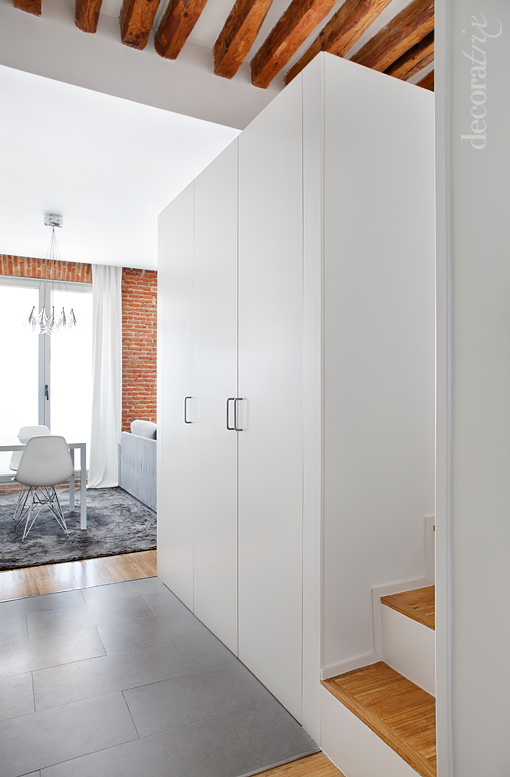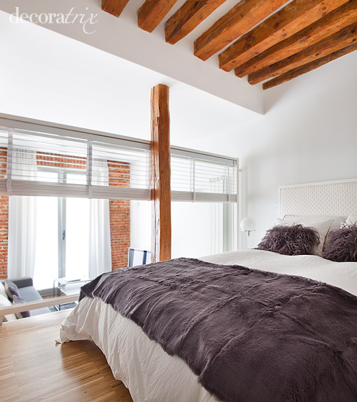 las vigas de madera y la pared de ladrillo.......¡un contraste genial!