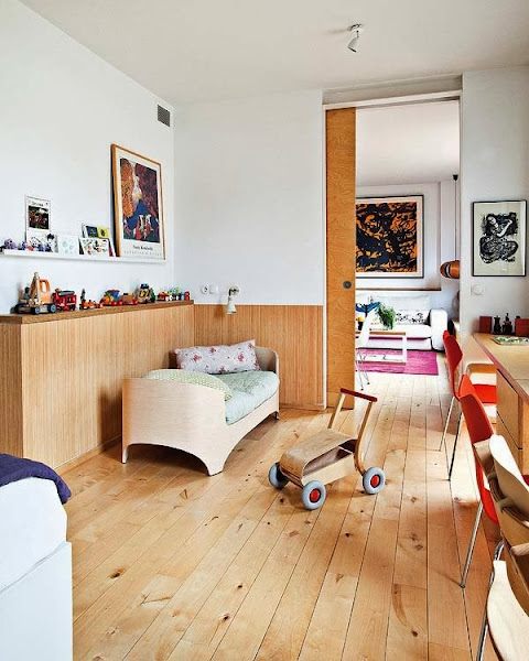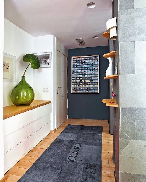 ¡Este piso minimalista ha sido decorado por el estudio studiovo.! ¡Estéticamente me gusta como base ...........aunque me faltan detalles ...! algún cuadro ..........o algún objeto decorativo más.............pero la combinación de colores en las paredes me han gustado mucho............ya que es diferente de las casas blancas a las que suelo estar acostumbrada a ver de este estilo........... el ...