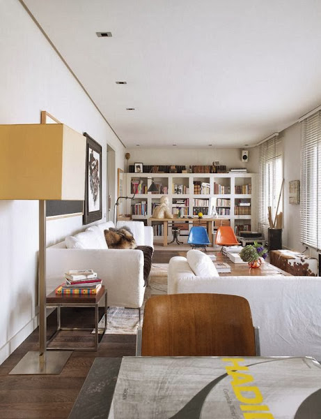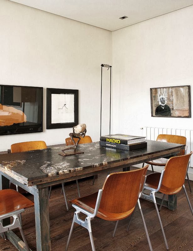 Esta casa de caja de simplicidad rotunda sita en el barrio del Eixample, pertenece a una empresaria y artista que ha sabido conjugar arte, diseño, y piezas de otras épocas en un exquisito ejercicio de armonía, equilibrio y buen gusto. Básicamente neutra, el poco uso del color refuerza la armonía. Una casa realmente bonita.