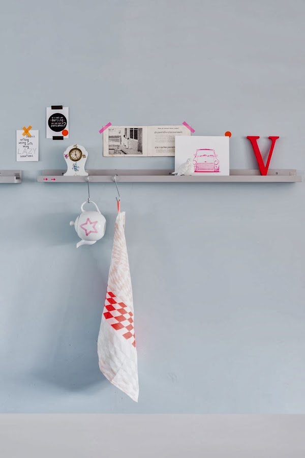 En otras ocasiones hemos visto como darle vida a espacios y rincones cuyas paredes y mobiliario carecen de color: aquí y aquí. Hoy, quiero enseñaros como sacarle partido a la decoración lowcost introduciendo pinceladas en color flúor, es muy sencillo de conseguir, solo tienes que hacerte con una simple cuerda en un color llamativo y otra de washi tape en la misma tonalidad y dar rienda suelta a tu imaginación. Son muy versátiles y sirven para decorar de mil maneras: introduciendo color al cabezal de la cama, para exponer diferentes fotografías, decorar un jarrón o una vitrina, incluso las teteras y las tazas del desayuno, si quieres decorarlas con un bonito motivo.