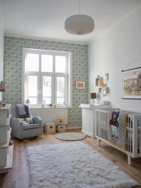 Nosotras sin palabras, el papel de pared es todo un acierto y combinado con una decoración centrada en textiles y colores pastel, este dormitorio de bebé es un conjunto lleno de estilo y personalidad, dulce y divertido a la vez.