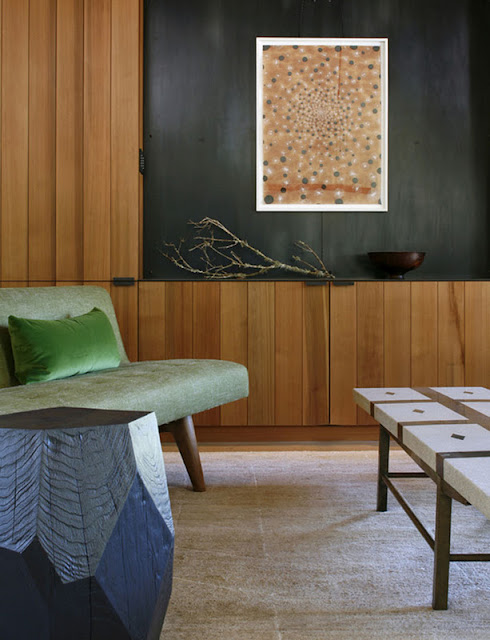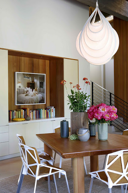Preciosa reforma llevada a cabo en este rancho americano , me gustan especialmente las paredes pintadas de ladrillo y la fantástica selección de mobiliario, ademas de los espacios amplios y la luz natural que invade la vivienda.No estaría mal celebrar la Navidad en ese porche exterior con el fuego verdad?