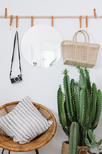 En esta ocasión, queda perfecto formando parte de este original perchero que además de soportar sombreros y bolsos, sustenta ese espejo tan necesario en toda entrada que presuma de práctica y coqueta...