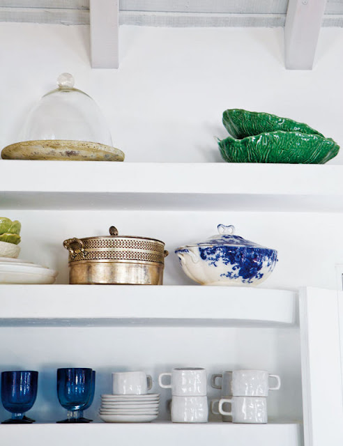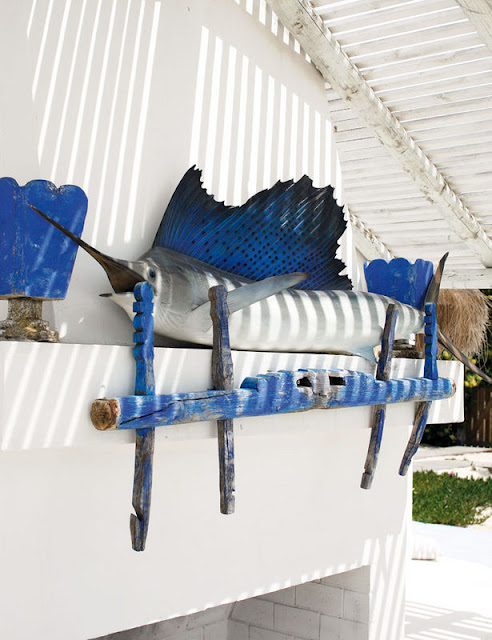 , tonos azules y blancos, estructuras de madera reciclada, cestas antiguas, muebles recuperados objetos abandonados... que, después de pasar por las manos de la diseñadora, cobran nueva vida y se reparten por la casa combinados con un gusto exquisito.