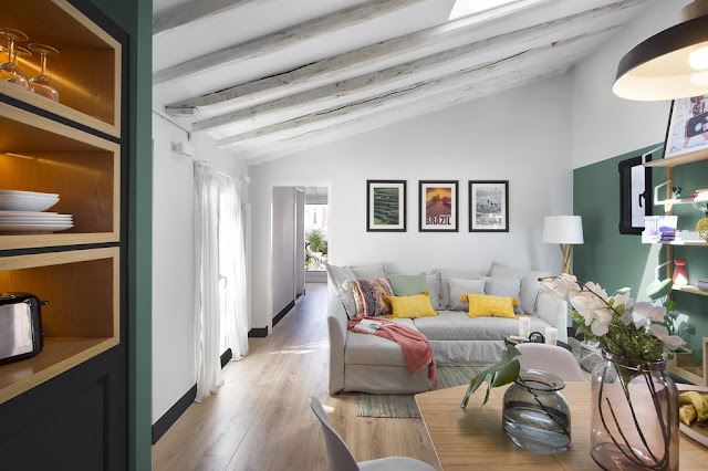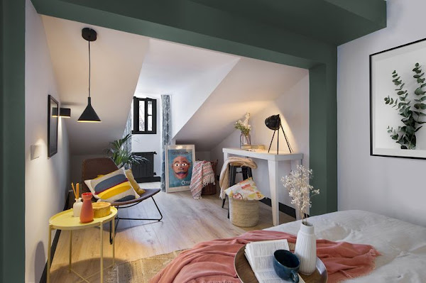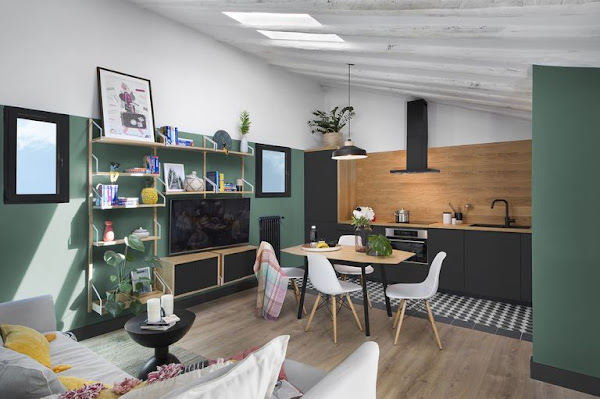 Un ático de tan solo 58 metros cuadrados llamado "El refugio del viajero" que cuenta con cocina, comedor, salón y terraza, además de un dormitorio y un baño. Diseñado como un espacio abierto en el que podrás descansar y escapar de la ajetreada vida urbanita. Con el color verde como protagonista este refugio se convierte en lugar perfecto para dejar volar tu imaginación, soñar y desconectar.