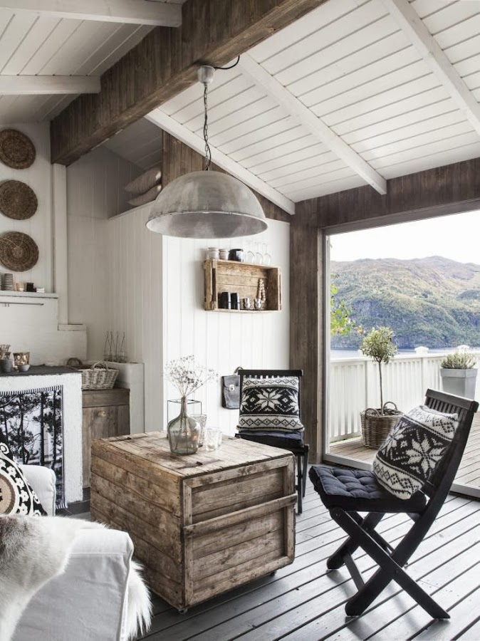 ¡un rincón con mucho encanto.......... con unas sillas plegables con cojines y un baúl reciclado...........!