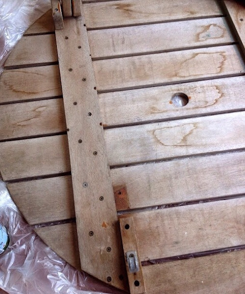 Lo primero que hice fue desatornillar dos listones de madera que llevaba la mesa en la parte inferior, que eran los que unían todas las tablitas entre sí: