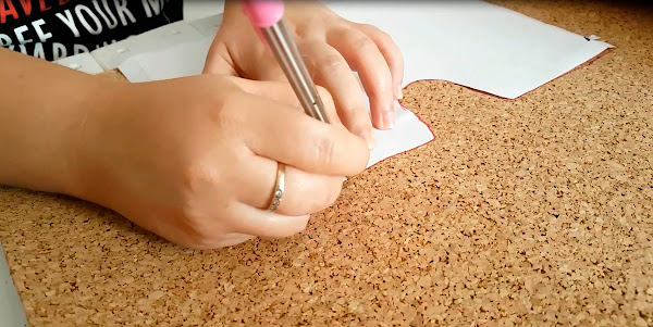 Lo primero que tenemos que hacer es descargarnos la plantilla y cortarla, después con la ayuda de un bolígrafo vamos a marcar tres plantillas iguales, y otra con uno de los lados 10 cm más largo que la plantilla.