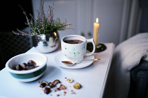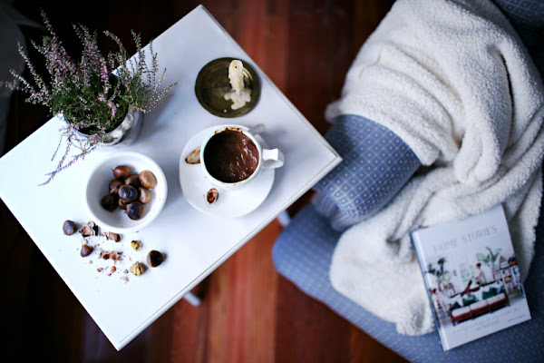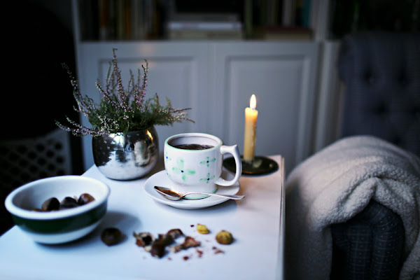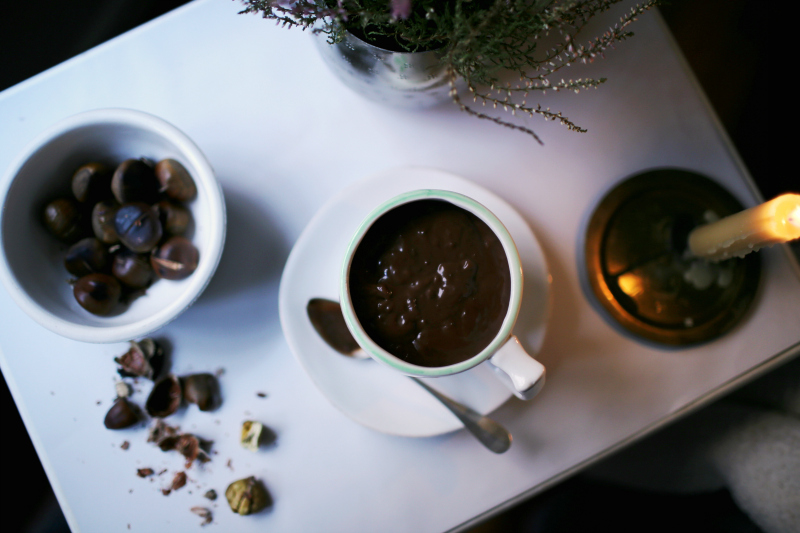 caliente, espeso y negro (como me gusta), unas castañas asadas y releyendo