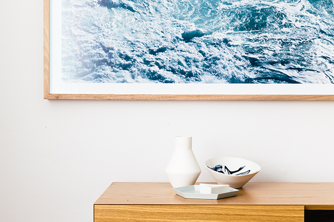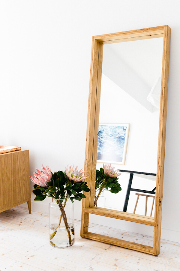 El rincón de hoy es de esos espacios que te quedas mirándolo y requete mirándolo porque hay algo en él que te atrapa. Lo cierto es que quizás sea la escasez de decoración, la presencia de la madera, el reflejo del mar en ese espejo o la potente importancia del jarrón con las dos bellísimas flores,todo ello hace de éste un espacio realmente atractivo, cómodo y confortable.