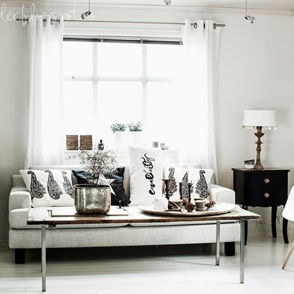 En el salón de hoy encontramos una mesa de centro larga, tan larga que es una vieja puerta de madera a la que han incorporado unas patas