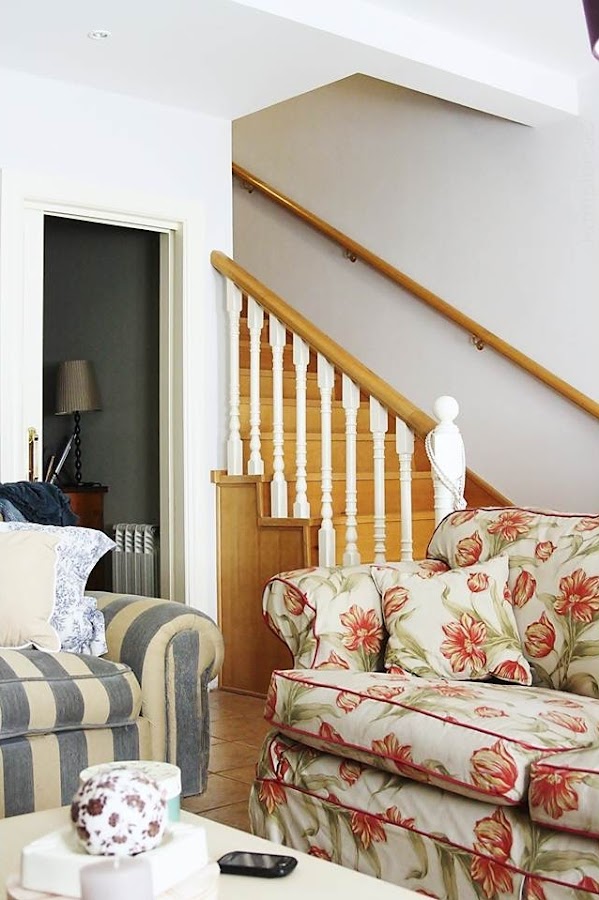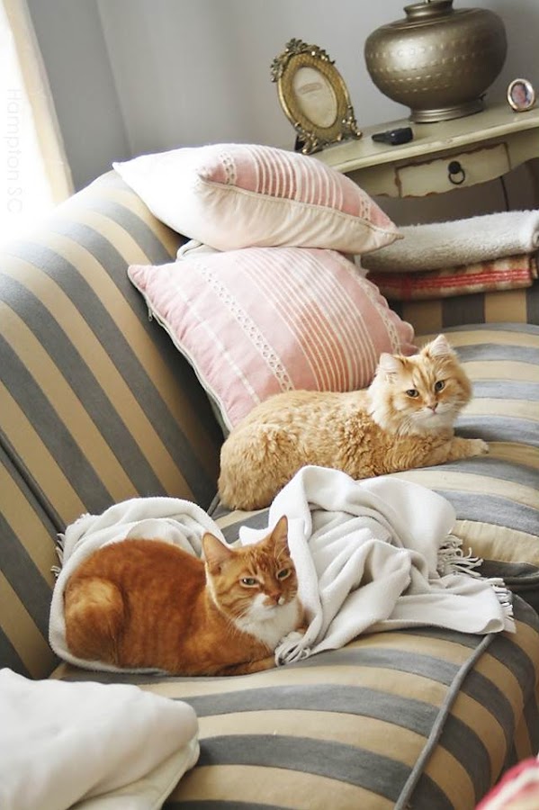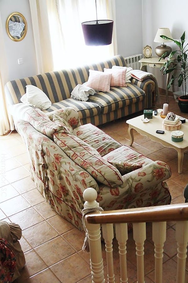 Mi pequeña aportación fue la tela de rayas en otomán beige