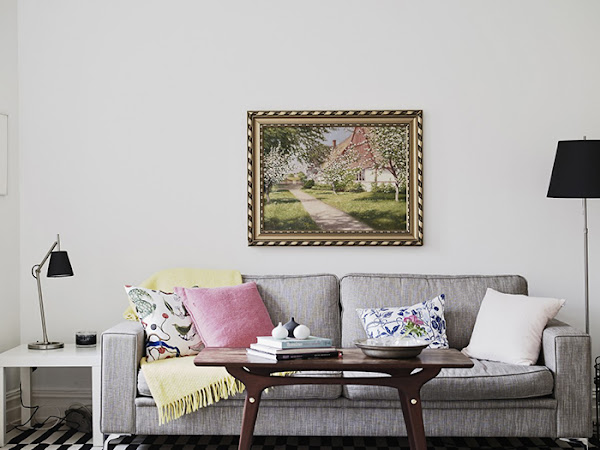 Empezamos la semana con un salón que tiene un estilo que, aunque a primera vista parece la típica estancia nórdica que encontramos en multitud de paginas de decoración escandi, sin embargo esconde un montón de ideas y sorpresas en lo que a mezcla de estilos se refiere. Simplemente el cuadro que han colocado encima del sofá ya rompe los esquemas y demuestra que el estilo es más atípico de lo que parece en este tipo de casas. Para conseguir una base nórdica así de sencilla pero efectista, tenéis los fichajes deco al final del post.