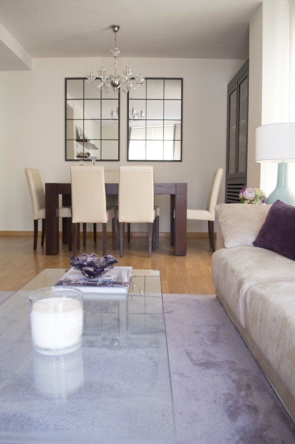 La lista de la compra que le mandé a Alicia incluía, lámparas, candelabros, una mesa auxiliar y otra de centro en cristal, espejos para la zona del comedor para agrandar visualmente el espacio.