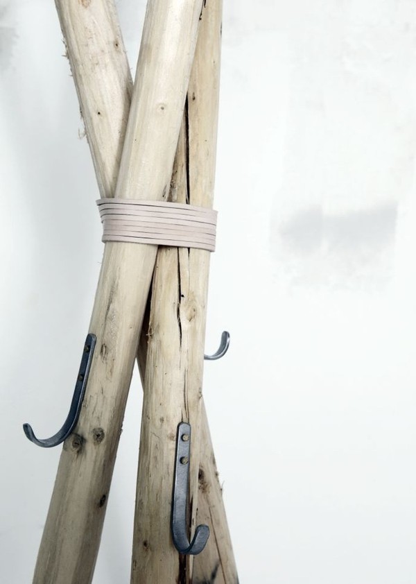 No necesitaremos más que tres o cuatro listones o palos de madera, un elemento de fijación entre ellos y algunos ganchos para colgar las prendas...