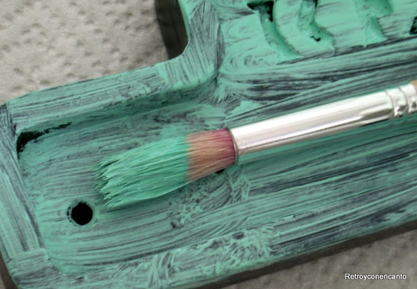 Para acompañar, situamos en su parte superior esta bonita chapa de metal decorada que una de nosotras adquirió en un reciente viaje a Portugal, y que aún buscaba su sitio. Parece que forman una buena pareja, ¿no creéis?