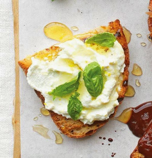 ¿Un tentempié? Una tostada, queso y unas hojitas de hierbabuena.