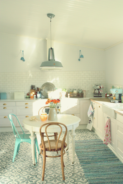 Ningún color como el turquesa nos traslada a playas paradisíacas y a vestidos de telas frescas y de favorecedores caídas... Así que estos días, que empieza a hacer calor, este color apetece, porque aporta alegría, relaja, ilumina y nos hace soñar... Y para ejemplo, esta sencilla y cálida cocina, que se refresca gracias a los toques de color y brillo que este color le aporta.