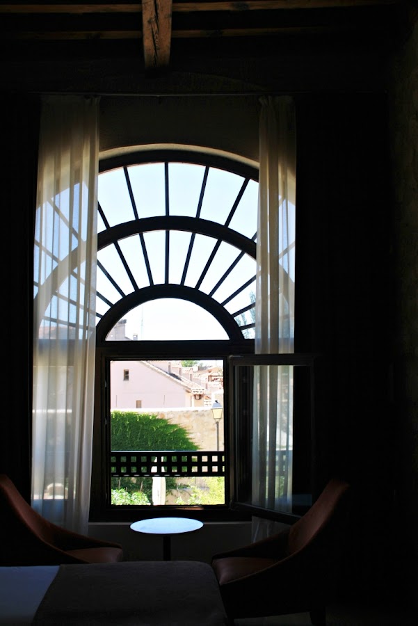 El punto focal es sin duda el gran ventanal semicircular delante del cual
