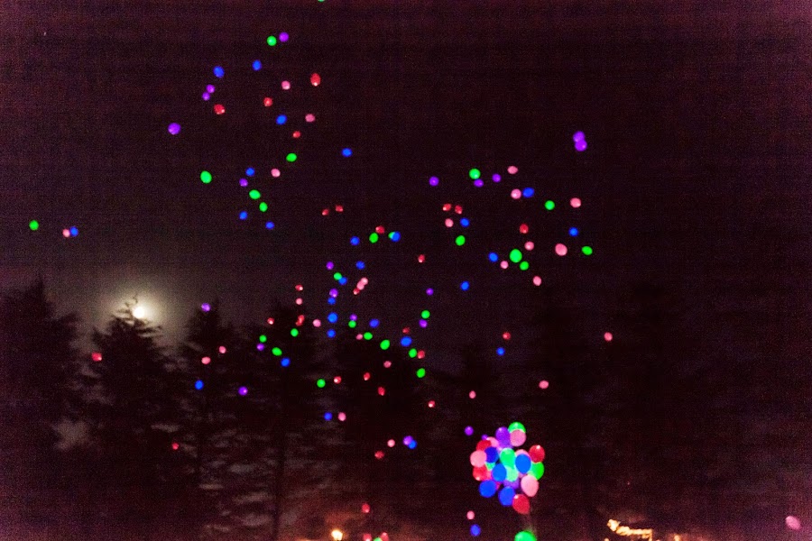 Después de la estupenda velada los novios sorprendieron a todos con estos globos que repartieron y con los que había que pedir un deseo para después soltarlos y ver como se alejaban iluminando el cielo de colores.