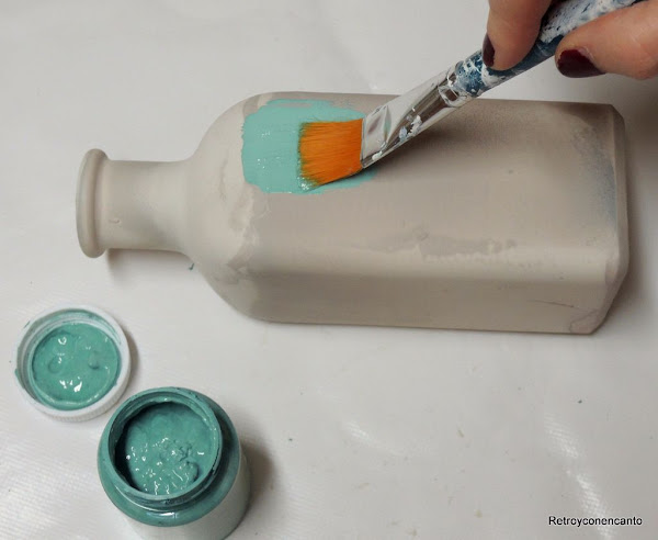 Pero el resultado no nos gustó demasiado, no por el tipo de pintura, sino por el color... Queríamos darle más vida, así que usamos la primera capa beig como base para nuestro adorado verde aturquesado....