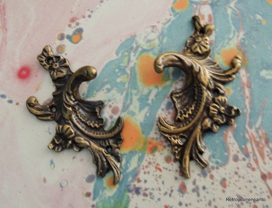 En otra de nuestras visitas a mercadillos localizamos estos pequeños apliques. En realidad son unos tiradores muy especiales, aunque poco prácticos por su forma escasamente ergonómica.
