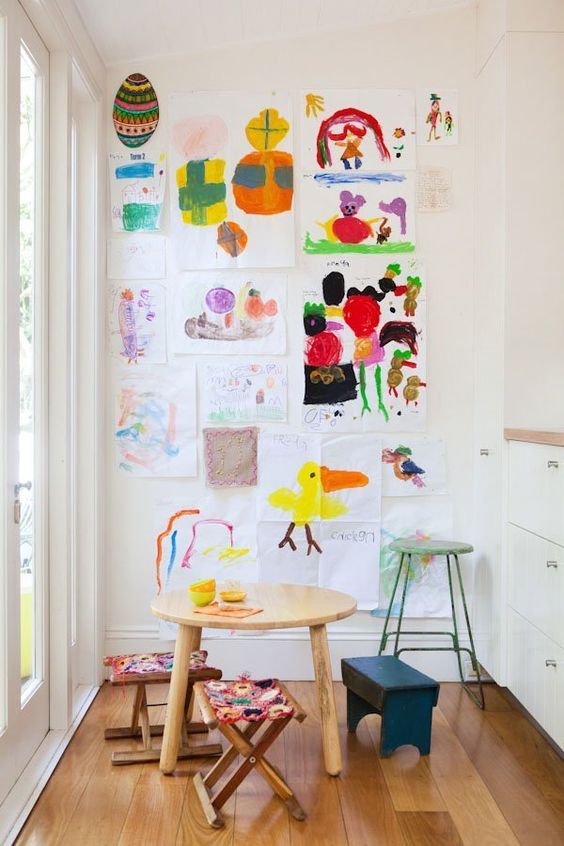 No suelo hacer muchas publicaciones con cosas de niños, supongo que será porque yo todavía no tengo y no me preocupa mucho pero esta idea es que mola bastante. Y no es tan descabellada la idea de seleccionar los mejores dibujos de nuestros hijos y realizar composiciones con ellos para decorar las paredes.La verdad es que creo que seria una idea muy buena para fomentar tu creatividad,si ellos ven que sus creaciones son expuestas en la casa para que todos las vean. Además pienso que seria un refuerzo importante y una demostración de que los papas y las mamas se interesan por lo que hacen.