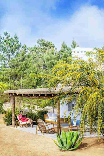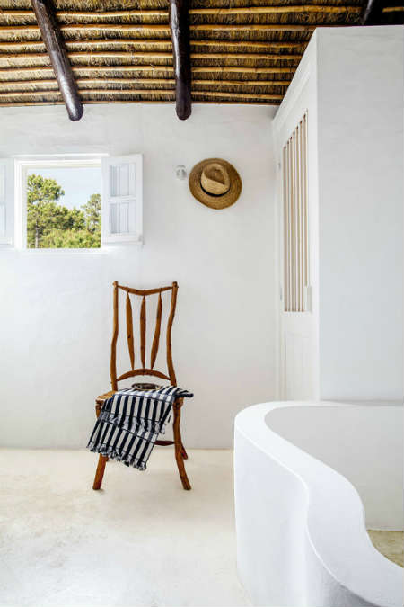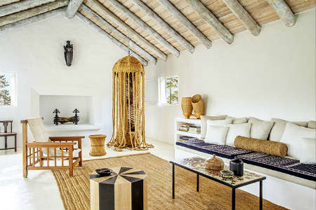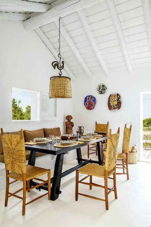Entre dunas y naturaleza autóctona encontramos una antigua cabaña de pescadores cerca de Lisboa llena de encanto. Parece una sencilla cabaña pero esconde en su interior esculturas y tradicionales detalles portugueses que me han conquistado. Piezas de madera y cuerda trenzada, tejidos de fresco algodón y en las habitaciones, colchas tejidas a mano, cerámicas típicas de la región ...y todo ello con un envolvente toque étnico que llena de personalidad todas sus estancias. Perderse unos días en una cabaña como ésta, junto al mar y entre una naturaleza salvaje, es casi, casi, como tocar el cielo ...