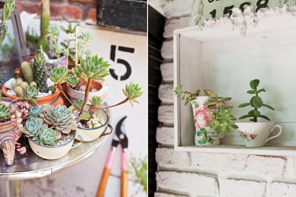 Botellas recicladas, marquitos pequeños..... detalles de lo más variado salpican la casa.El verde no podían faltar las plantas en la casa de una paisajista ¿no crees?. Bueno yo creo que en ninguna.