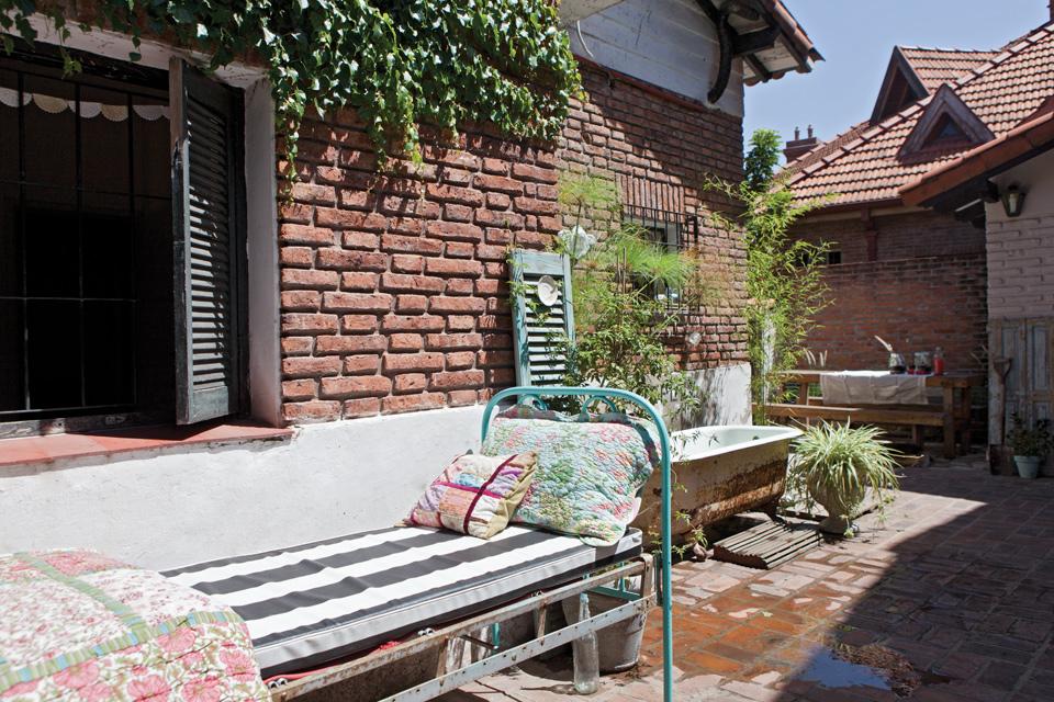 Mención a parte tiene el exterior de la casa,con su cama de hierro a modo se sofá o para echarse una siestecita y la antigua bañera de patas , que no está ahí sólo de decoración, es utilizada para que su dueña se dé baños espumosos. Vaya gozada!!!!