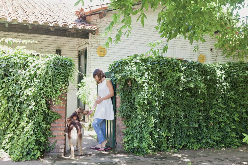 Su dueña Gabriela paisajista de profesión y decoradora de vocación buscó esta casa a las afueras de la ciudad y allí se traslado con su perro y parte del mobiliario que tenía en su antiguo piso aprovechando la ocasión para costumizar y dar un nuevo aire a muebles y objetos.La mezcla de piezas vintage, el blanco y los tonos pastel como hilo conductor son su sello de identidad.