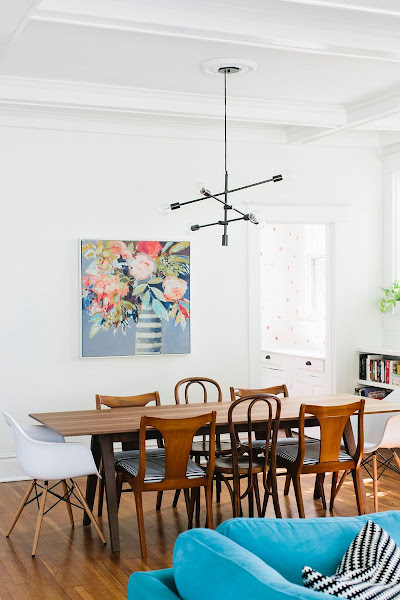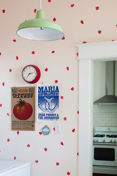 Hola gente bonita, esta casa que les comparto hoy puede servir mucho de inspiración, tiene detallitos poco comunes (como el papel tapiz de fresas en la cocina) para animarnos a decorar con lo que a nosotros realmente nos gusta muchas veces se puede pensar que tenemos que decorar con lo que esta de moda, pero hay que recordar que nuestra casas es una extensión de nosotros, de nuestros gustos. Disfruta el tour!