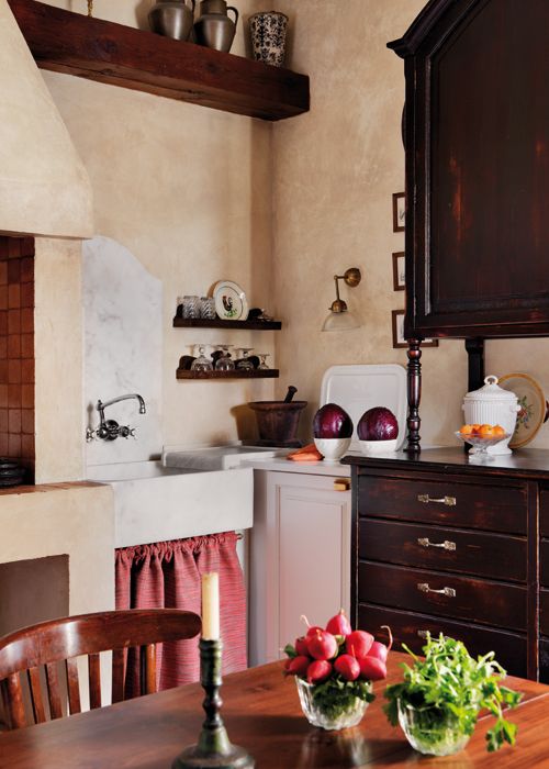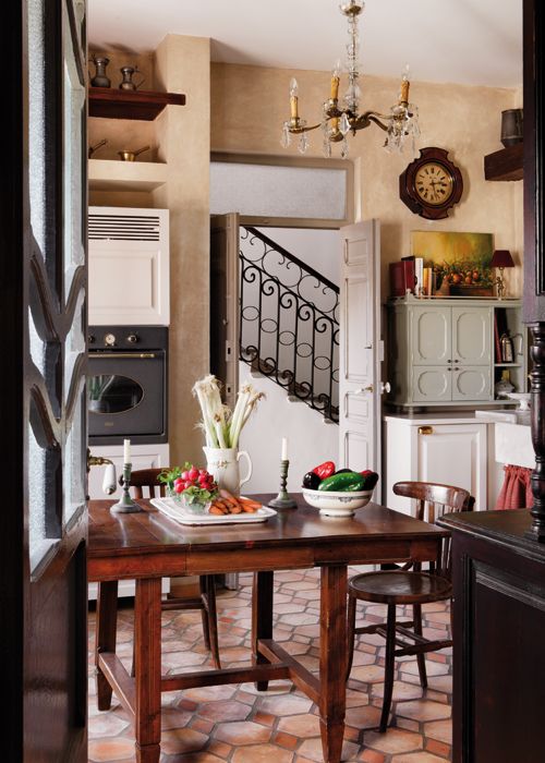 Esta casa de herencia familiar constuida en 1928 atesora multidud de piezas antiguas reunidas por la propietaria. Una mezcla de piezas clásicas ( consola isabelina, las piezas que componen el comedor, lámparas y apliques....detalles decorativos... )mezcladas con piezas rústicas y otra de aire más vintage como las que podemos enconrtrar en el patio o jardin de la casa .Todo ello guardando un conjunto armónico nada recargado y que no nos lleva a a pensar que estamos en esas casas con aire de museo que a mi me producen un cierto desagrado si no unas ganas de salir corriendo.¿ A ti no te pasa?.