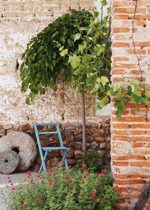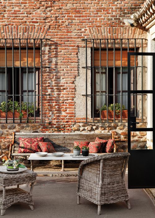 Pero lo que más me a enamorado de la casa es su exterior con esa sencillez un tanto descuidada pero hermosa y esos rincones para perderse con un libro o solo escuchar el sonido de los pájaros o la zona de reunión. Ideal para disfrutar del exterior de esta casa de campo en los días calurosos y quedarte charlando después de una buena cena hasta la madrugada en buena compañia.