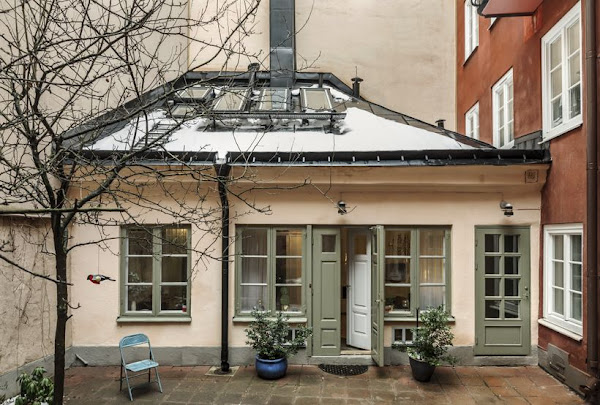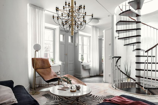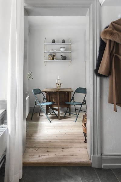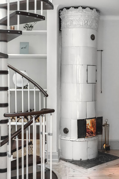 Buenos días a todos!! Os queremos enseñar un piso impresionante en Suecia, con bonitos detalles como las puertas de corredera, suelos victorianos, altos techos, molduras y estuco en los techos, chime ...