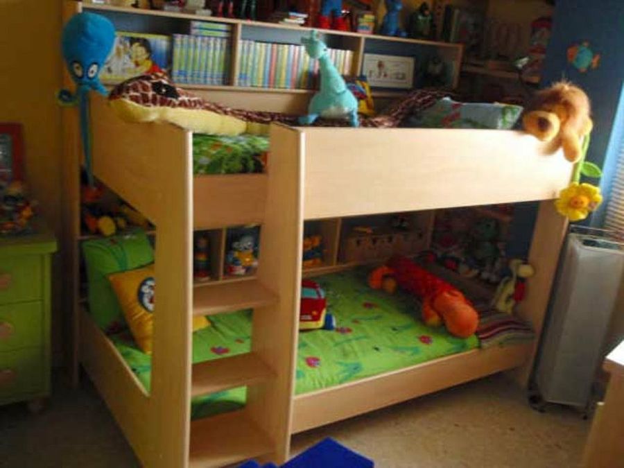Las habitaciones de los niños están llenas de juguetes y colores. Vemos cómo se ha aprovechado el espacio al máximo utilizando literas, camas nido y escritorios pegados a la pared. Para tenerlo todo en su sitio se recurrió a las estanterías ‘Expedit’ de Ikea y a los cajones de almacenaje de Carrefour Home.