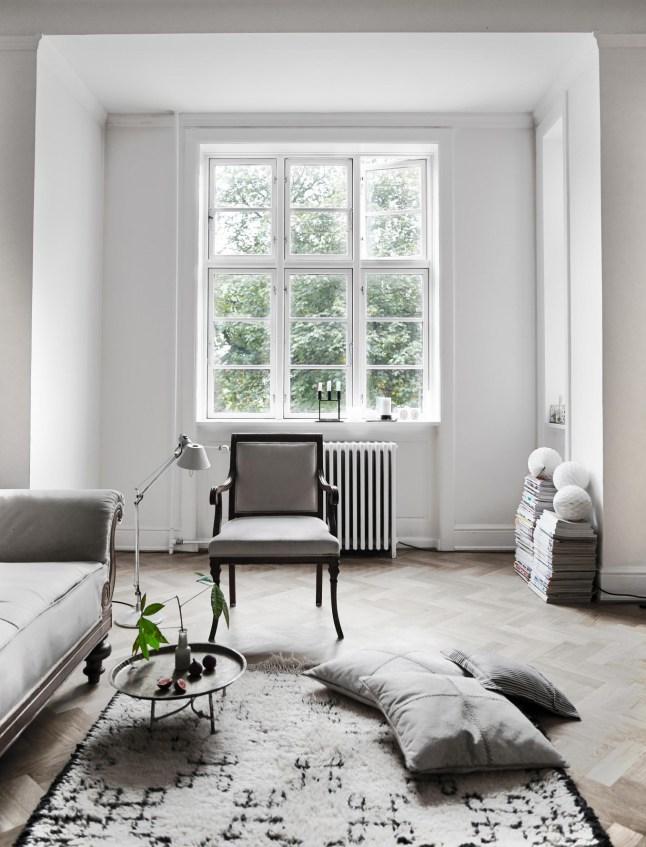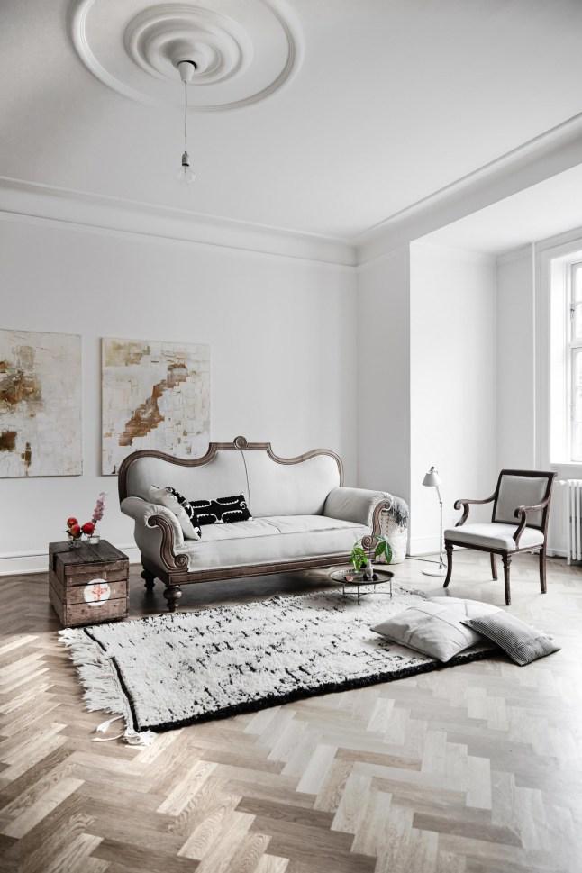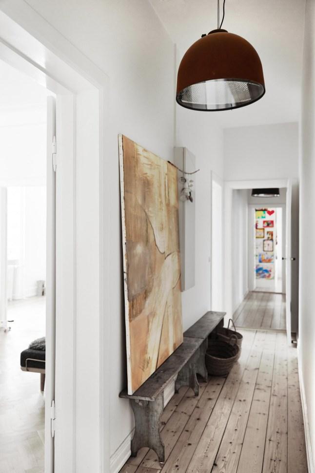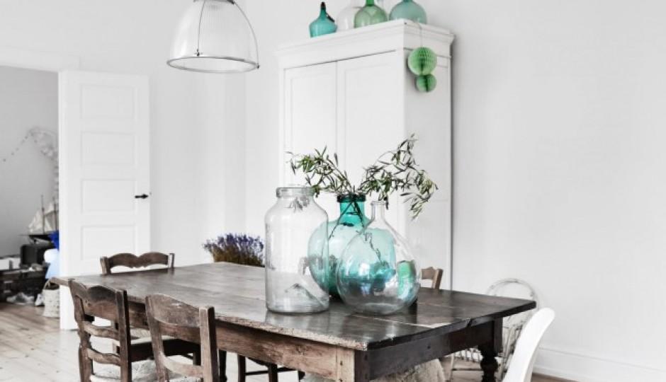 Así que viajo contigo virtualmente a una casa de estilo nórdico con toques rústico chic que se encuentra en Copenhage ,propiedad de una pintora y estilista que ha creado un hogar encantador donde el blanco como seña de identidad del estilo nórdico se combina con toques neutros y texturas con maderas y fibras naturales.Muebles que mezclan el aire rústico con otros de estilo elegante piezas de épocas pasadas conviven en perfecta armonía con otras nuevas.Una casa de decoración sobria y sencilla pero llena de detalles como las damajuanas o las cajas antiguas que sirven de mesas y almacenaje.Una vivienda que transmite esa armonía y equilibrio del que te hablado.