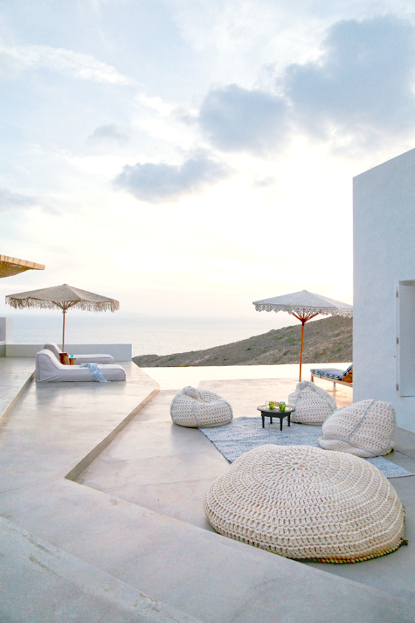 Ya tenemos el fin de semana encima y teniendo en cuenta que estamos en pleno Agosto y con unas temperaturas sumamente altas (por lo menos en Gran Canaria) no está nada mal visualizarnos unas horitas en una vivienda de vacaciones de este tipo. Yo solamente con la zona exterior ya me quedo loca, qué preciosidad y bueno ni que decir del entorno, las isla griega de Syros. Todo lo que sea mar como fondo ya consigue mi plena atención ( ya sabes que soy de arena, mar y sol)