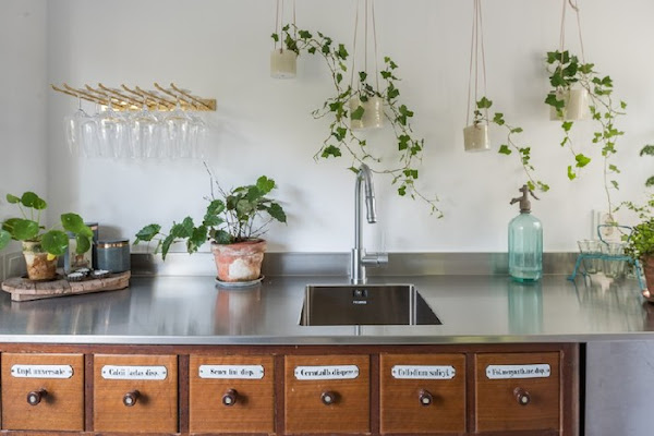 Como veis es una casa super recogida, muy vivida y super bonita!, me ha encantado ese mueble lleno de cajones que tienen en la cocina, es precioso y además recuperado, que más se puede pedir!