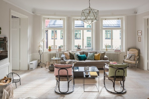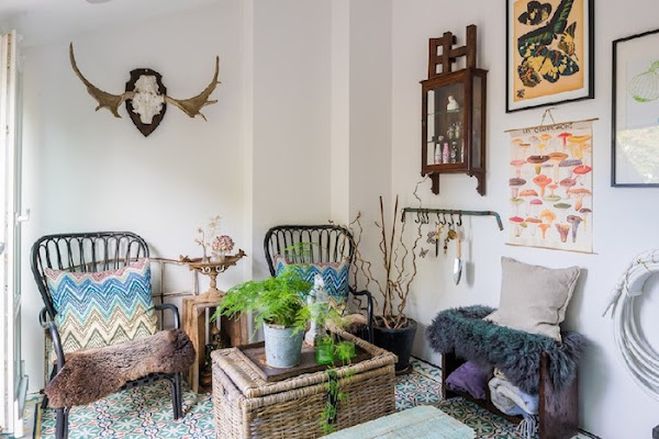 Una casa super bonita llena de detalles y colores alegres, toda bien recogida y con un gusto exquisito por la decoración. Tiene una mezcla de estilos que la hacen única y la verdad es que sus propietarios tienen que estar contentísimos de su hogar. Tienen nada menos que tres chimeneas!, si si, tres! y yo ya me muero de amor solo en cuanto veo una!.