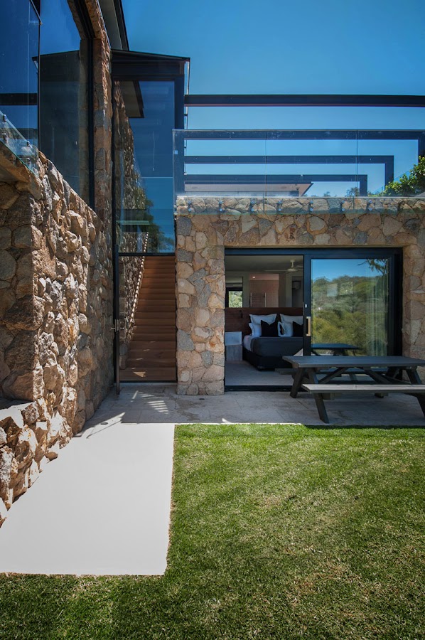 En piedra, madera y acero, frente a un río en Australia, el diseño de la casa nos ha enamorado, que nos íbamos a vivir ahora mismo allí sin pensarlo dos veces.