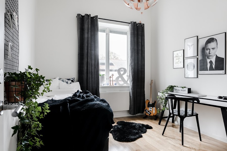 Pasarse de negro puede producir que a la larga ( o no tan larga) nos acabemos cansando de este tipo de decoración, y quedarnos cortos, puede producir el efecto contrario, es decir, que veamos que le falta un poco de "chispa" a la casa. Pero los propietarios de la casa de hoy, han conseguido encontrar el equilibrio perfecto y hacer de esta fantástica casa, un hogar.