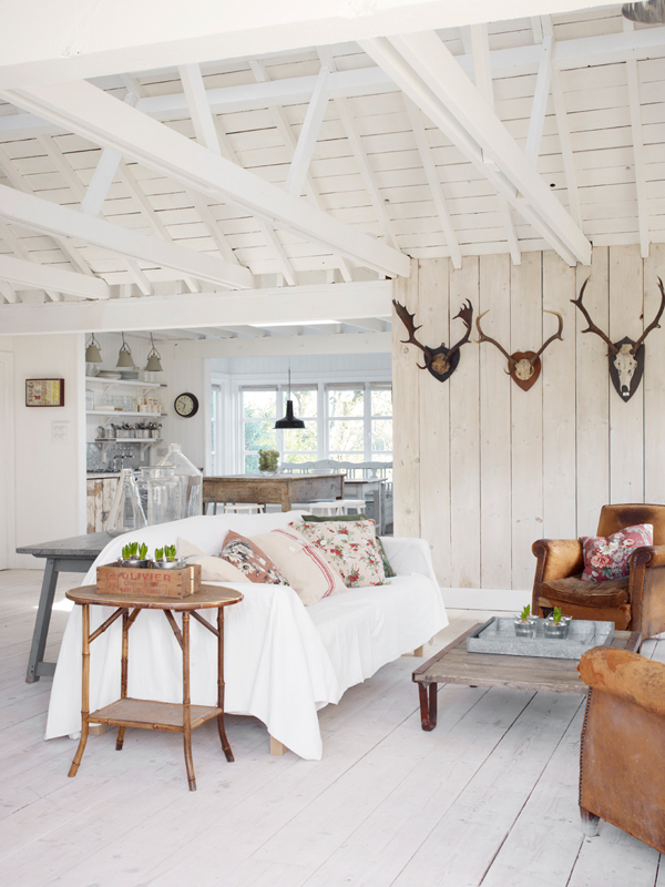Sólo le he encontrado un pero y es que no me gustan nada pero nada, la verdad es que me producen rechazo por muy de moda que estén y salgan en un sinfín de revistas y blogs las cabezas de animales colgando de las paredes. Salvando este escoyo decorativo la casa verdaderamente me parece encantadora.