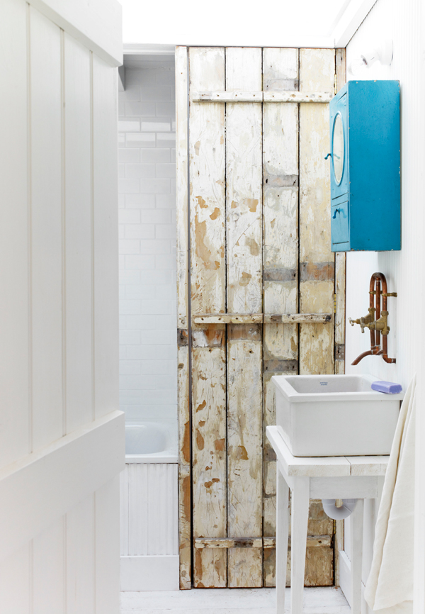 Con esos techo altos abuhardillados y ese blanco impoluto que envuelve todos los espacios, las maderas recuperadas con las que se han decorado los espacios,como los muebles de la cocina hechos de listones con su madera en bruto, el panel divisorio del baño o las puertas de la vivienda.