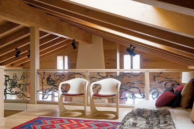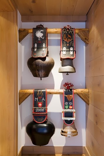 Un detalle que llama la atención entre los tantos que alberga este chalet, son las enorme campanas, tradición en muchas casas suizas, con la fecha de nacimiento impresa de los miembros de la familia. No hay una estancia en la que no te pares un momento a contemplar el buen gusto a la hora de decorar una casa en las montañas, llena de sabor rústico y auténticamente suizo.