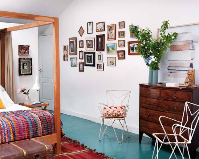 Una casa un tanto ecléctica con aires bohemios que gira en torno a un patio interior ajardinado de planta abierta y llena de color. Un chalet en pleno centro de Madrid que pertenece a una colonia que se hizo allá por los años cincuenta.Un oasis de clama, salpicado de colorida alegría.