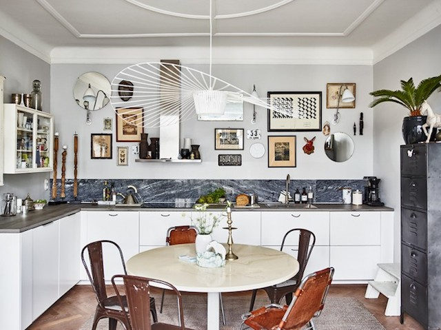 La idea de colocar elementos que a primera vista no colocaríamos en esa zona me parece de lo más acertado y divertido. ¿Os habéis fijado en el archivador de oficina colocado en la cocina?